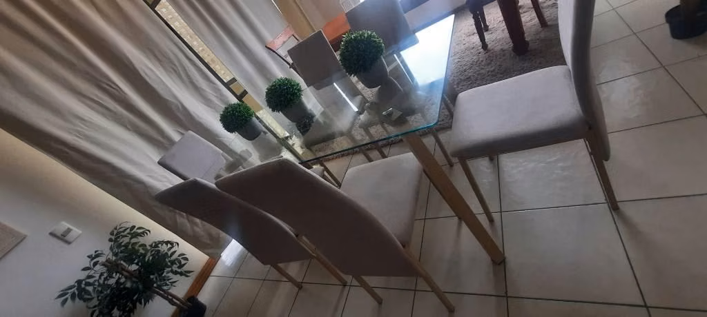 Por renovación, se vende juego de comedor 6 sillas colores claros, consultas solo al wasap .