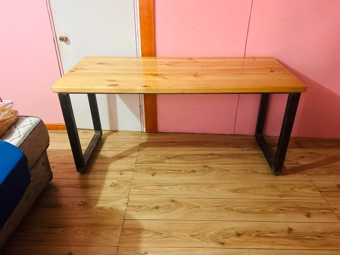Mesa de madera con base de metal de (160cm) de largo (70cm) de ancho y (80cm) de alto