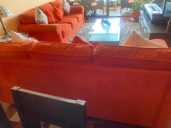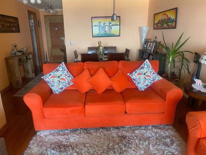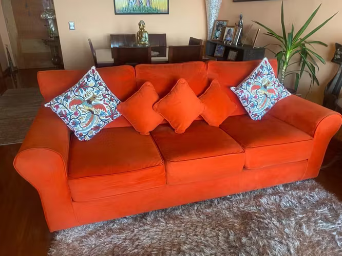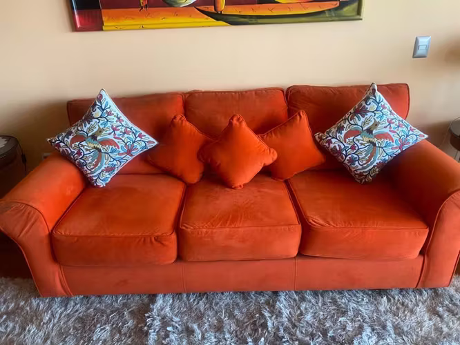 Tengo para la Ventas 2 Sofás de las siguientes medidas Largo 2 mts, ancho 90 cms y alto 85 cms. Su color naranja de felpa, con todos sus cojines 6 pequeños y 4 grandes van de regalo. En perfectas condiciones, para entrega inmediata y no se entrega a domicilio.
