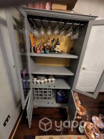 En Calama se vende mueble de madera, con estantes para copas y vinos. Es color gris azulado. Tiene algunos desgastes de pintura en la parte inferior. Sus medidas son: alto 183 cms., ancho 95 cms. y profundidad 47 cms. No se lleva a domicilio. Madera sólida.