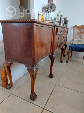 Juego de comedor antiguo más de 100 años. Consta de mesa de comedor, 8 sillas y 2 sitiales. Además de un buffet