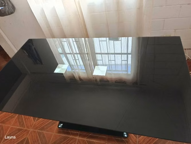Se vende mesa de vidrio gruesa sin SILLAS Valor 150.000 la vendo por espacio y por no uso.
