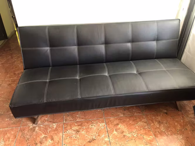 Futon Cuerina color Negro, poco uso buen estado.