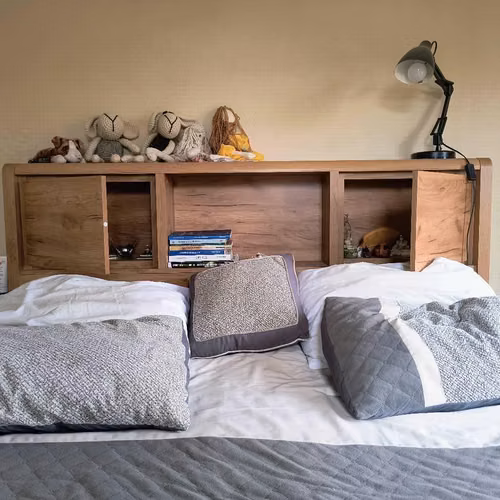 vendo respaldo para cama de 2 plazas, impecable, 1 mes de uso, con estante y cajones