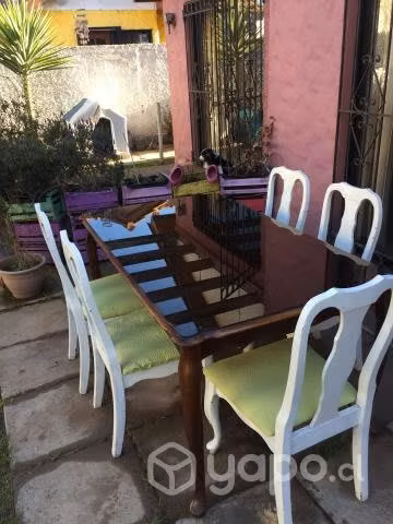Vendo Comedor de madera con 6 sillas, protección de vidrio.