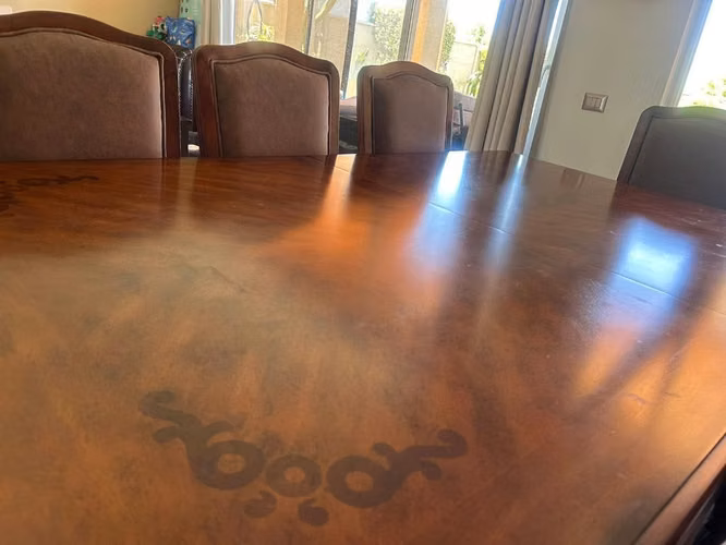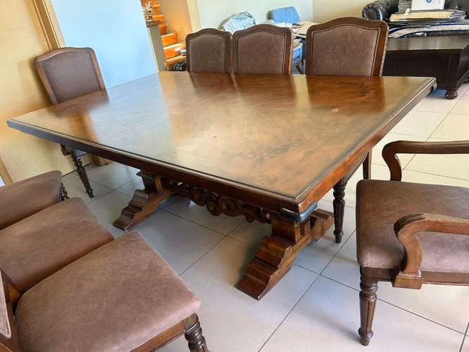 Precioso comedor de madera, 6 sillas mas dos sitiales.