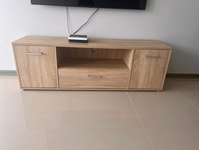 - AricaRack / Mueble TV color madera con puertas y ruedas – Viña del Mar