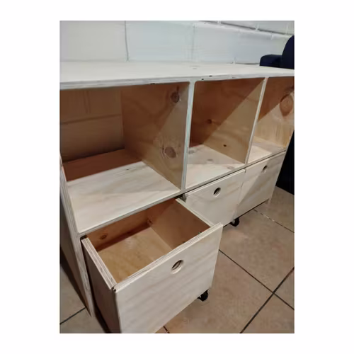 Nueva línea infantil de muebles Isimar, juguetero y organizador con ruedas y 3 contenedores, elaborado en terciado estructural de 15mm. ideal para niños y niñas de entre 1 a 6 años.