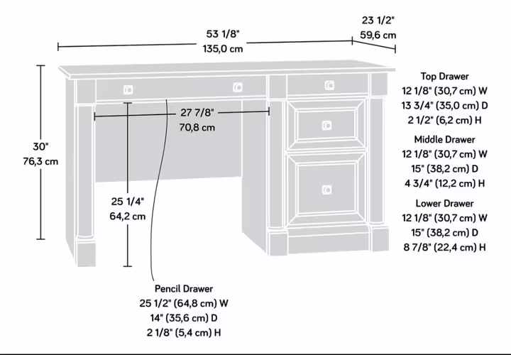 Escritorio Sauder, modelo Palladia. Necesita restauración.