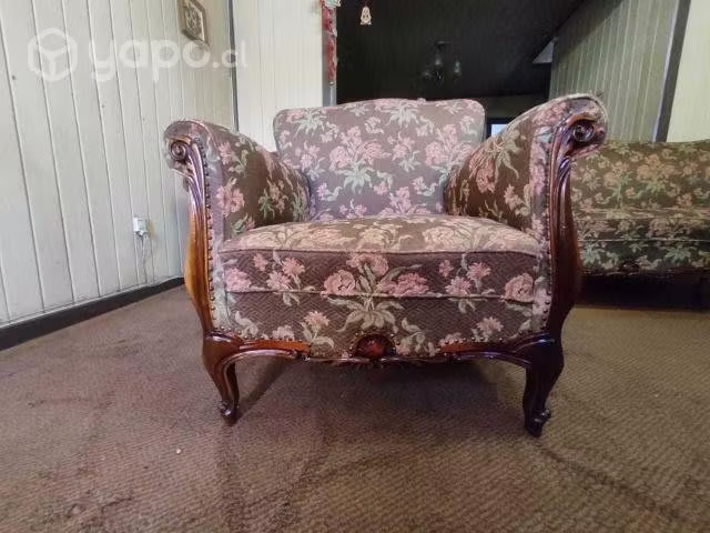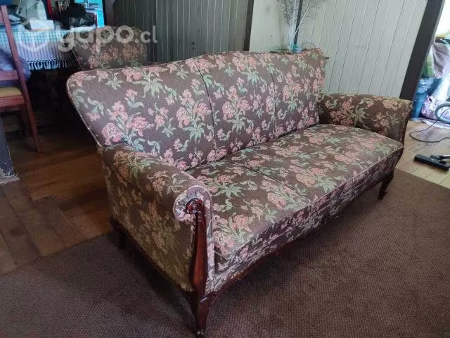 Juego de living estilo normando de tres piezas de madera nativa, en buen estado.