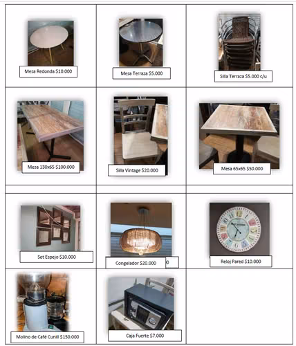 Se vende Mobiliario y Decoración para Cafetería en Temuco, llamar al celular o al .