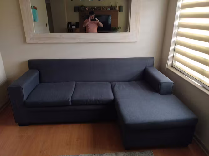 Seccional, se puede mover en diferentes posiciones, tela, comprado en Muebles Santa Ana, el año 2022.