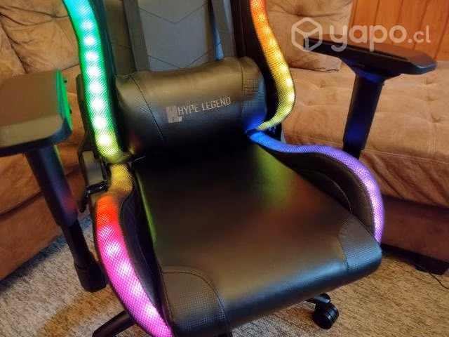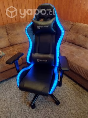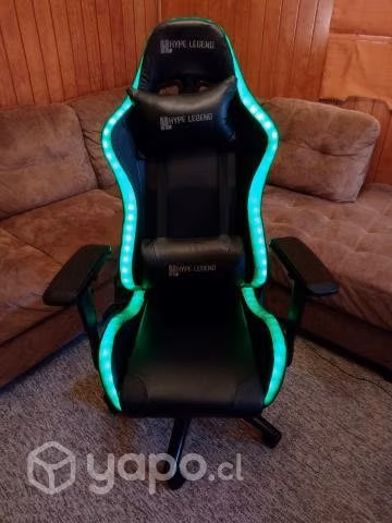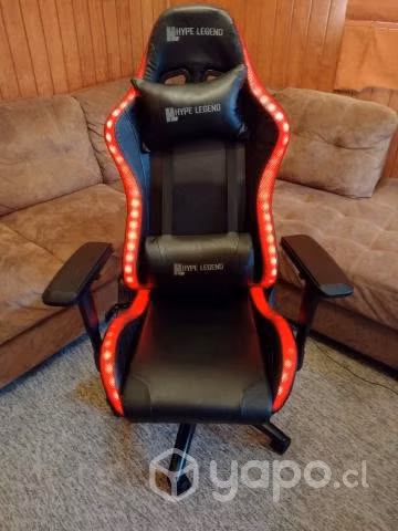 Silla gamer con luces LED a control remoto, se puede conectar al PC o a una batería externa (no incluida).