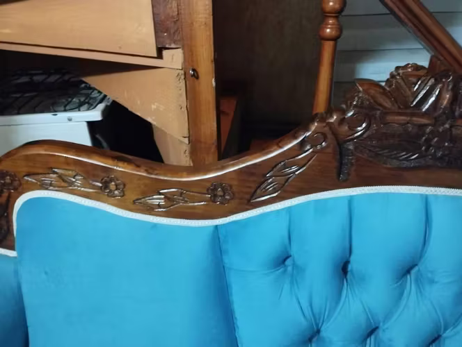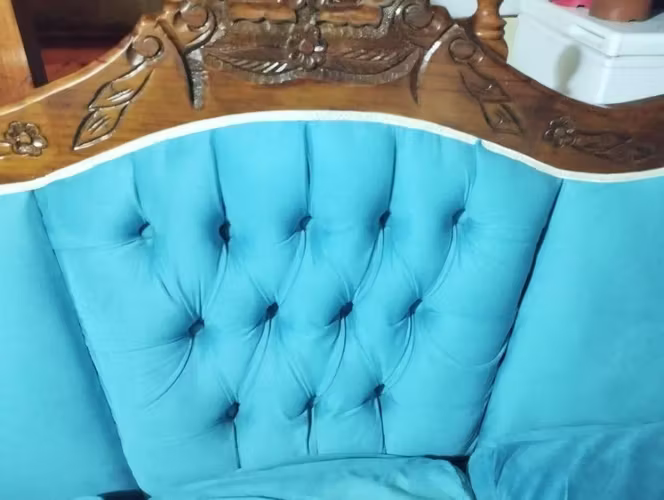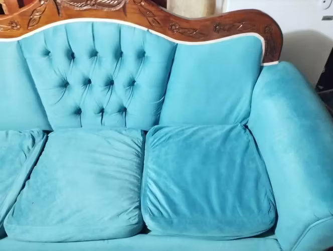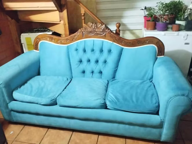 Hermoso sillon felpa tallado , turquesa,capitone, 3 cuerpos. tapiz excelente.