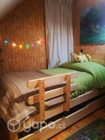 Se vende cama nido de transición de madera para niños de 2 a 7 años, con baranda, en perfecto estado hecho a medida por maestro mueblista + colchón Rosen Kinderline Floating System Usada (140x70x20 cm.) + colchón Drimkip (134x70x15 cm.) practicamente nuevo, sin uso + ropa de cama de regalo.