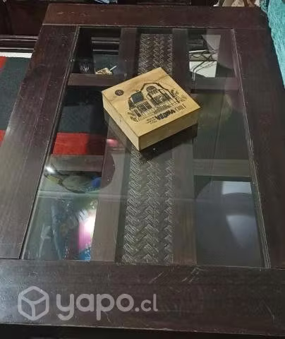 Se vende mesa centro x renovación y espacio. Mide 1m largo por 75 ancho. Color café y vidrio en el centro