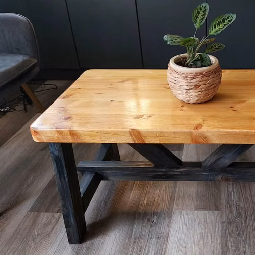 mesa de centro rustica las medidas son: 80 cm de ancho, 50 cm de profundidad y 40 cm de alto.