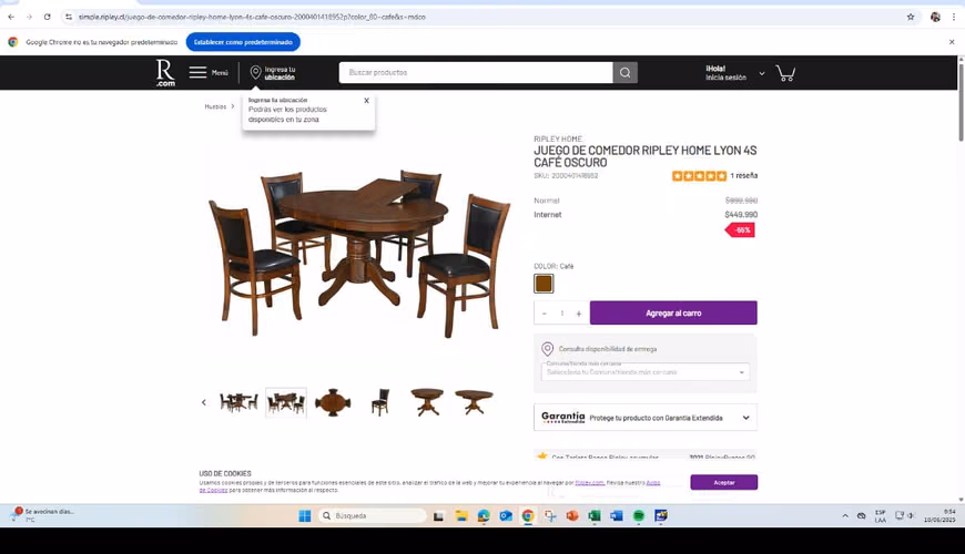 - ÑuñoaComedor Madera Extensible Ripley Home Lyon + 4 Sillas