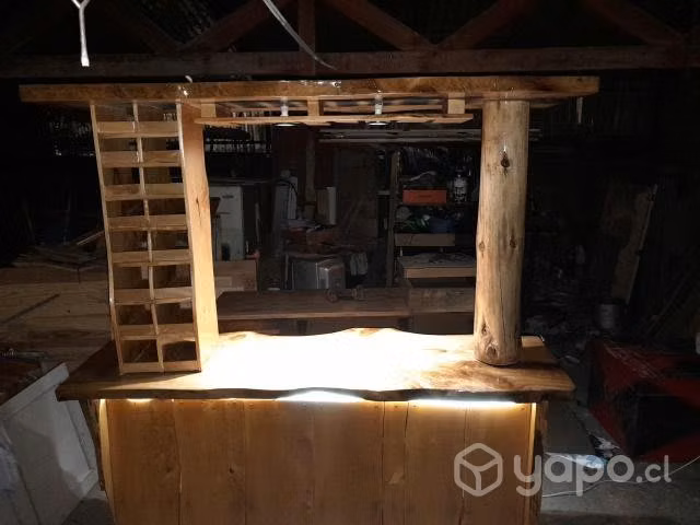 Se vende bar .medidas alto 1.94 cm largo 1.72 cm fondo 50cm . Estructura de cipre y mañio cubierta de laurel apellinado ,clavo de cobre .