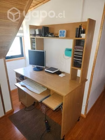 Excelente mesa/rack de computador con varios compartimentos para teclado, mouse, parlantes y otros como libros. Las medidas son alto 158 cm, ancho 120 cm y profundidad 60cm.