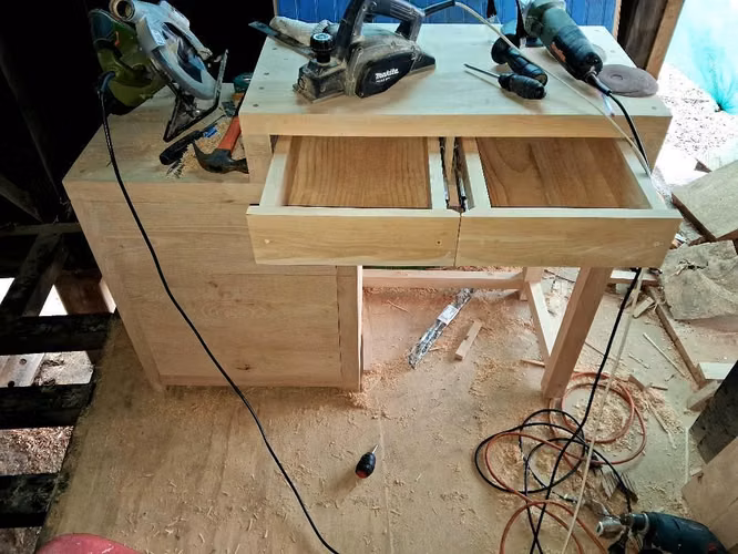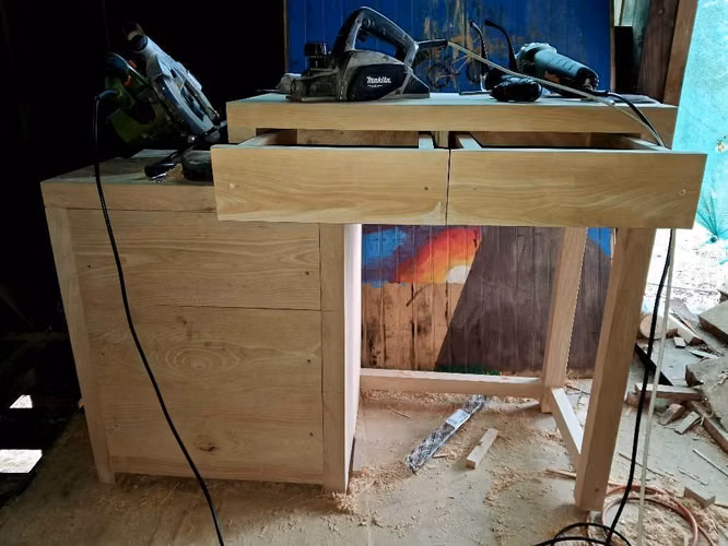 - ÑuñoaMesa de madera roble modular con 3 compartimientos
