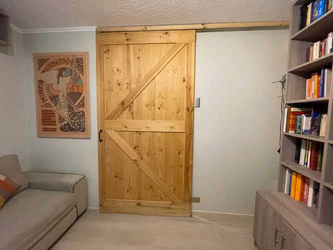 Estuvo instalada en una casa del sector El Bosque, no tiene ningún daño. Es de 2,35mts de alto por 1,23mts de ancho, fabricada en pino.