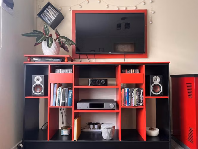 - AricaRack / Mueble TV color madera con puertas y ruedas – Viña del Mar