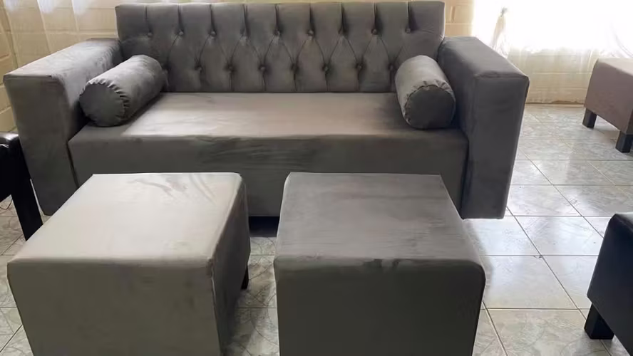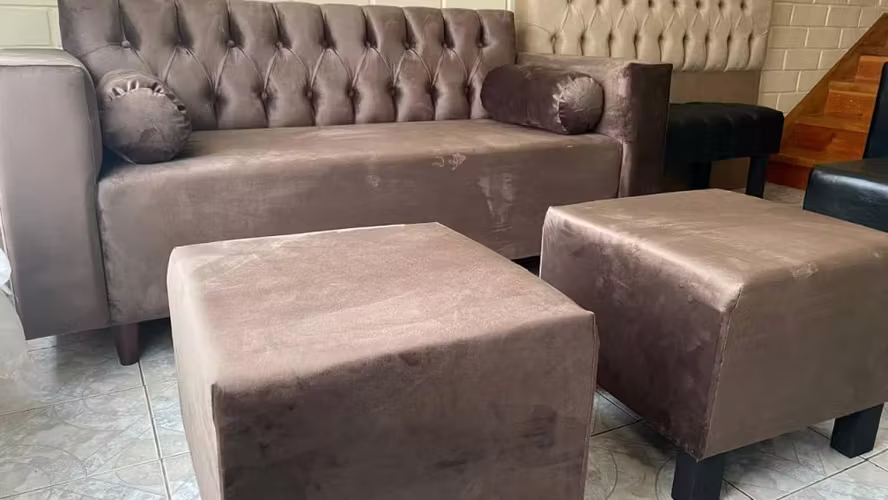 sofá capitone 3 cuerpos ++ 2 puff + cojines.