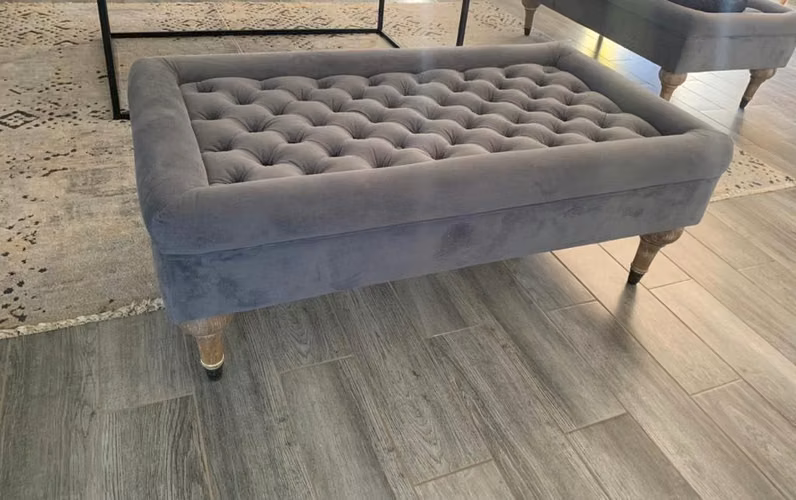 2 Banquetas capitone color gris Laura Ashley cada una con medidas de 1.20x80x50 cm.