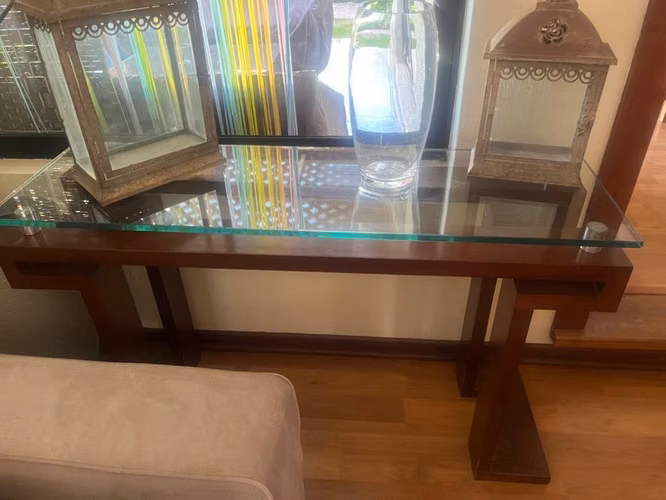 Mesa arrimo excelente estado, de madera con vidrio 10 mm aprox. 1.30 x80 x 40