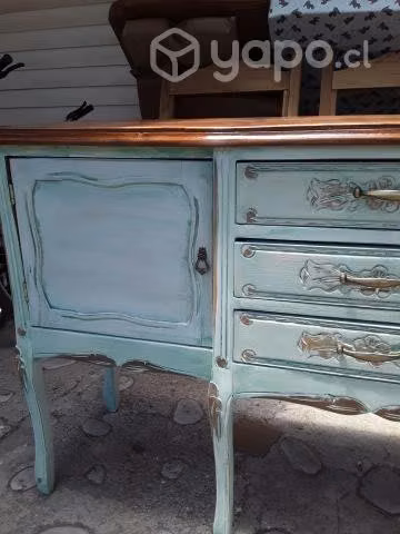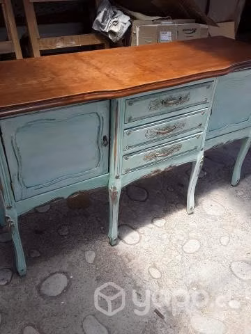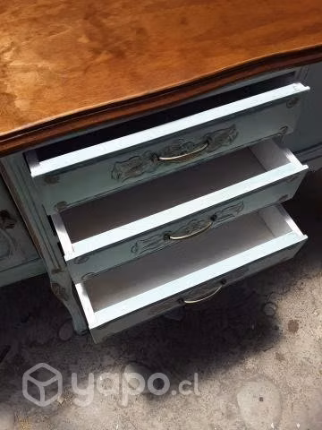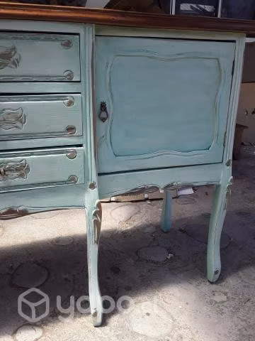Técnica Albayalde en pintura color calipso con envejecido, tallados desgastados.