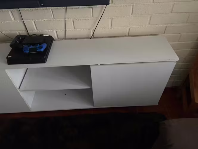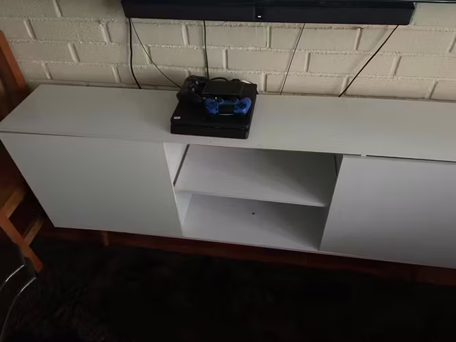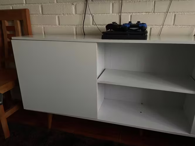 Rack color blanco, de tamaño mediano ideal para sala de estar.