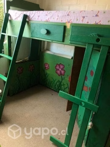 Se vende cama alta con colchón de 1 plaza, fabricada con buen material. Tiene un estante en su parte inferior con repisas. La cama tiene 3 cajones, escalera y baranda.