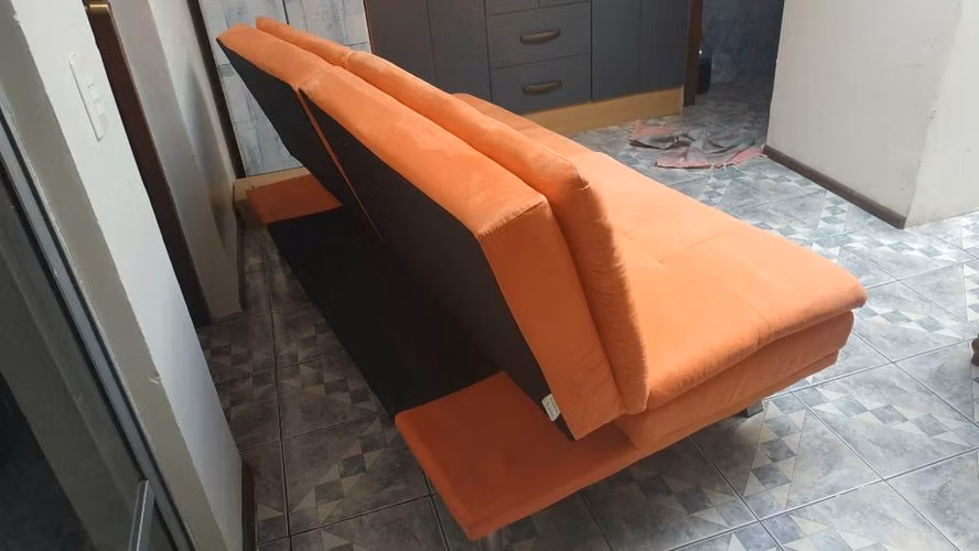 Se vende hermoso Futón Cama, prácticamente nuevo, color Naranjo, tela de Felpa, sus medidas son 1.80 de largo, 89cm de profundidad, 79 cm de alto, se vende sólo por espacio.