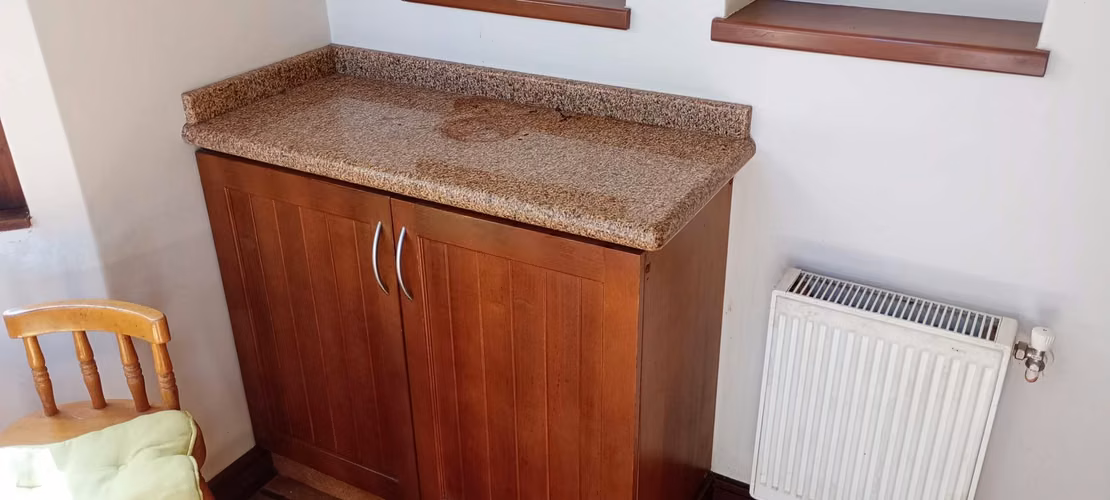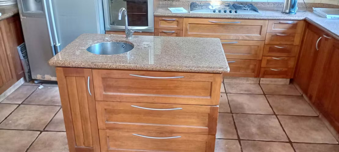 Se vende juego de muebles de cocina completo, muebles aéreos, muebles de trabajo con cajoneras, vitrina, isla, todos con cubierta de granito.