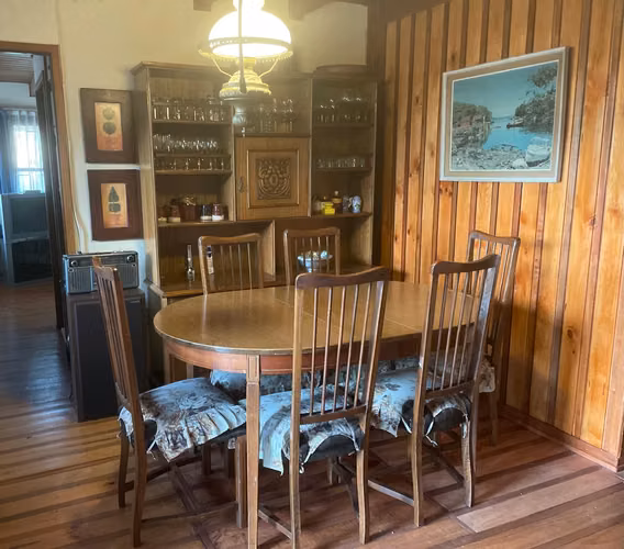 Es un mueble de comedor casi nuevo , un comedor en muy estado, una lampara antigua de centro