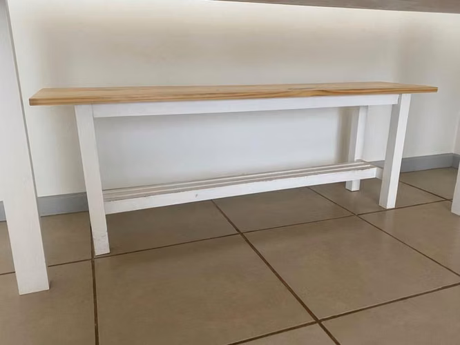 Madera pino, cubierta vitrificada, cubierta 2 pulgadas de espesor.
