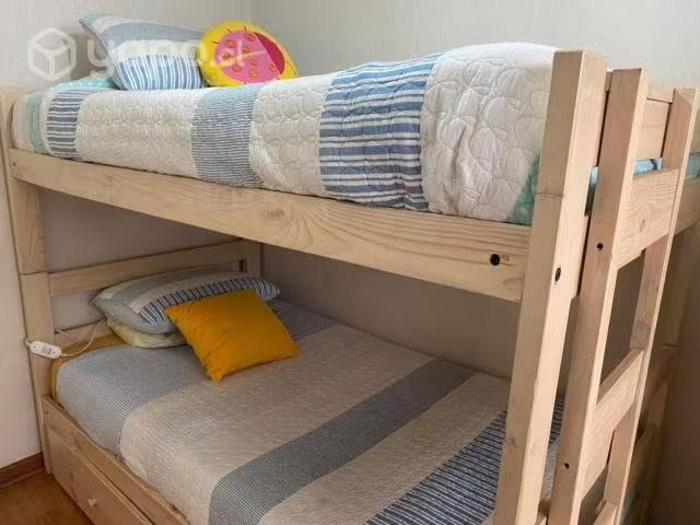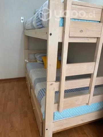 Vendo litera en madera de pino lacado con un leve tono en blanco de 1 plaza y media con colchones incluidos. Todo en excelente estado, debido al poco uso, ya que es para cuando vienen mis nietas de visita y tiempo desde que se mandó a fabricar 5 años aproximadamente.