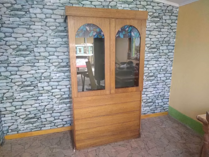 Mueble doble uso tipo biblioteca , se puede usar por ambos lados como separador de ambientes, como bar, buena madera ,es pesado, tiene cajón y puerta con llave, está barato, sector plaza el retiro Quilpue