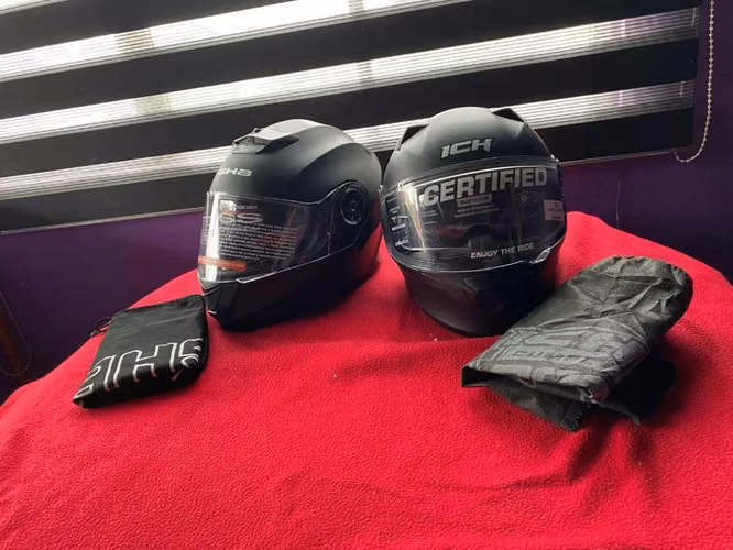 2 cascos para moto 1 talla M, 1 talla S.