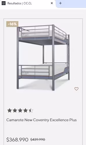 Vendo hermoso Camarote Coventry de CIC con colchones CIC Excelent Plus. Muy poco uso. Todo el conjunto actualmente está en oferta en CIC en 360 mil pesos
