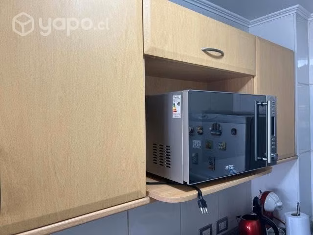 Cocina lineal de 4 metros, incluye muebles encimera de granito, lavaplatos, grifería, horno y campana, todo funcionando perfectamente.