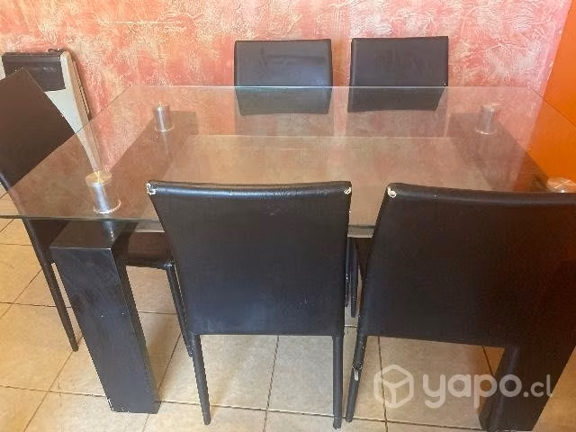 Comedor vidrio 6 sillas estilo capitone