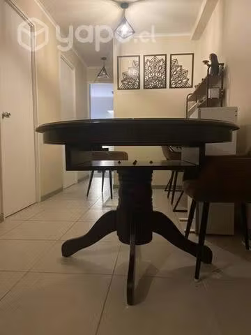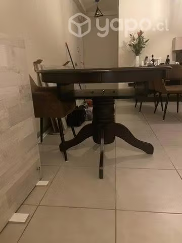 Se vende mesa redonda de madera en buen estado color caoba (por renovación ) sus medidas son 76cm de alto y 106 cm diámetro . Conversable