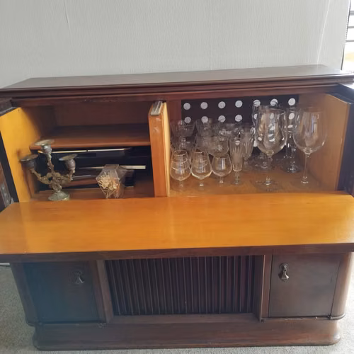 Antiguo tocadisco, se usa como licorero o guardar loza, vasos 120.000