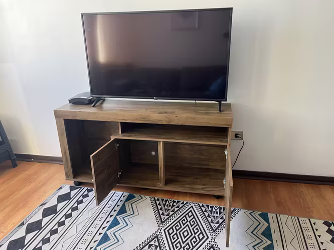 2 puertas + repisa/espacio central abierto para deco/TV box/consola