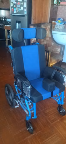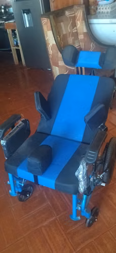 Esta silla de ruedas es una ayuda técnica para pacientes con secuelas de ACV, amputados uni o bilateralmente, parapléjicos, enfermedad de Parkinson avanzada, demencia en estados avanzados y otros.