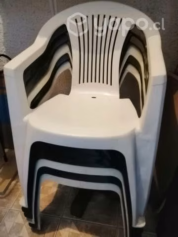 Seis sillas plásticas en excelente estado, colores blancas y verdes.