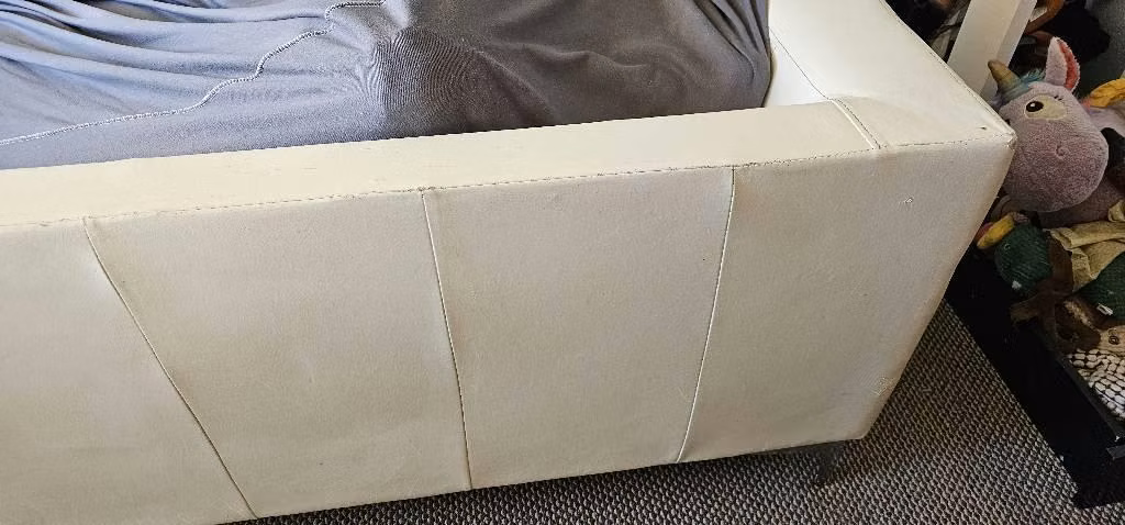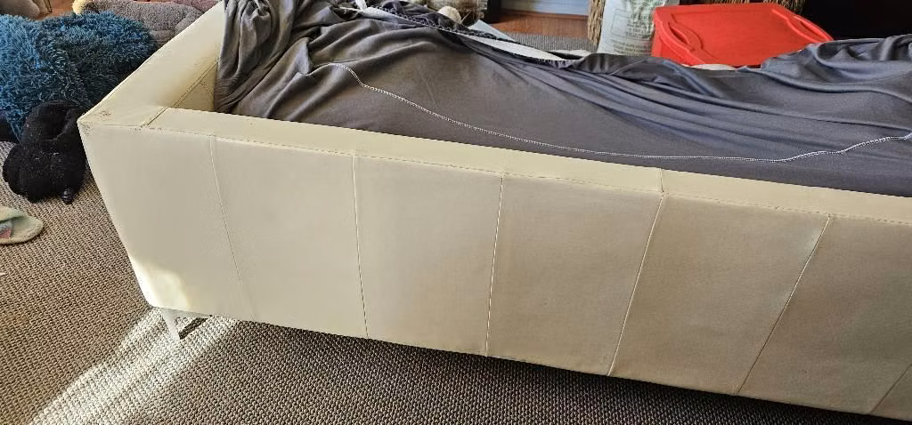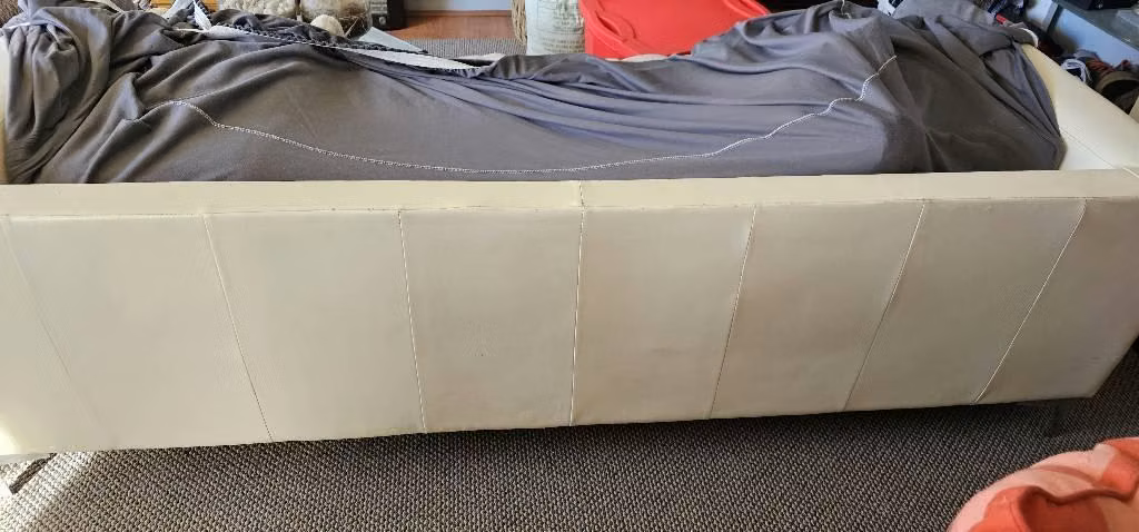 Largo 2.50 mts ancho 87 cm, la estructura del sofá está perfecta, tiene los detalles en el tapiz de las fotos es de eco cuero por eso se recomienda para tapizar.