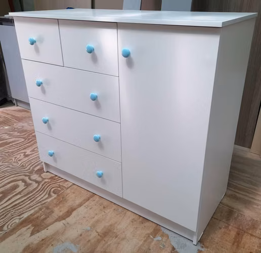 se venden prácticas y eficientes Cómodas de melamina blanca correderas metálicas tapacantos de pvc perillas de color..